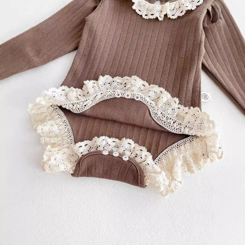 This elegant onesie features long sleeves and a delicate striped pattern, ideal for your baby girl’s autumn wardrobe. The hollow-out collar adds a refined touch, combining comfort with subtle sophistication. Crafted for softness and ease, it keeps your little one cozy while presenting a timeless, stylish look perfect for cooler days.