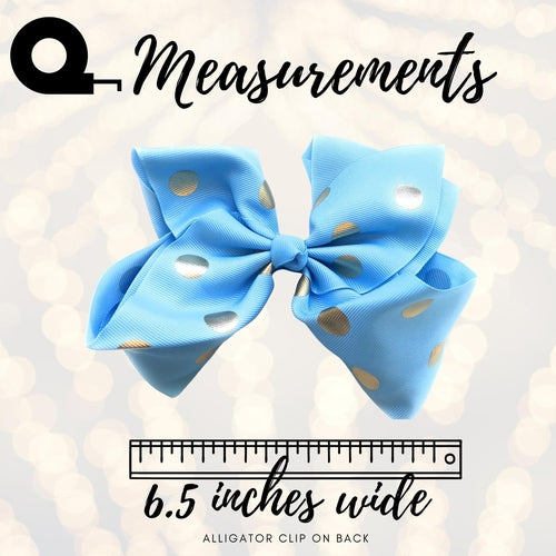 Add a touch of whimsy to your little one's outfit with our Pastel and Gold Dot Hair Bow Clip. These darling bows feature a 3-inch wide grosgrain ribbon adorned with gold polka dots, looped into a 6.5-inch wide hair bow and secured on an alligator clip. They're the perfect accessory to complement Easter dresses, spring outfits, or just to add a splash of fun to any day! ššø